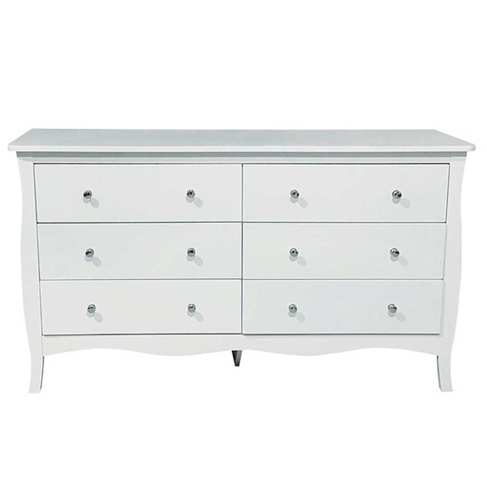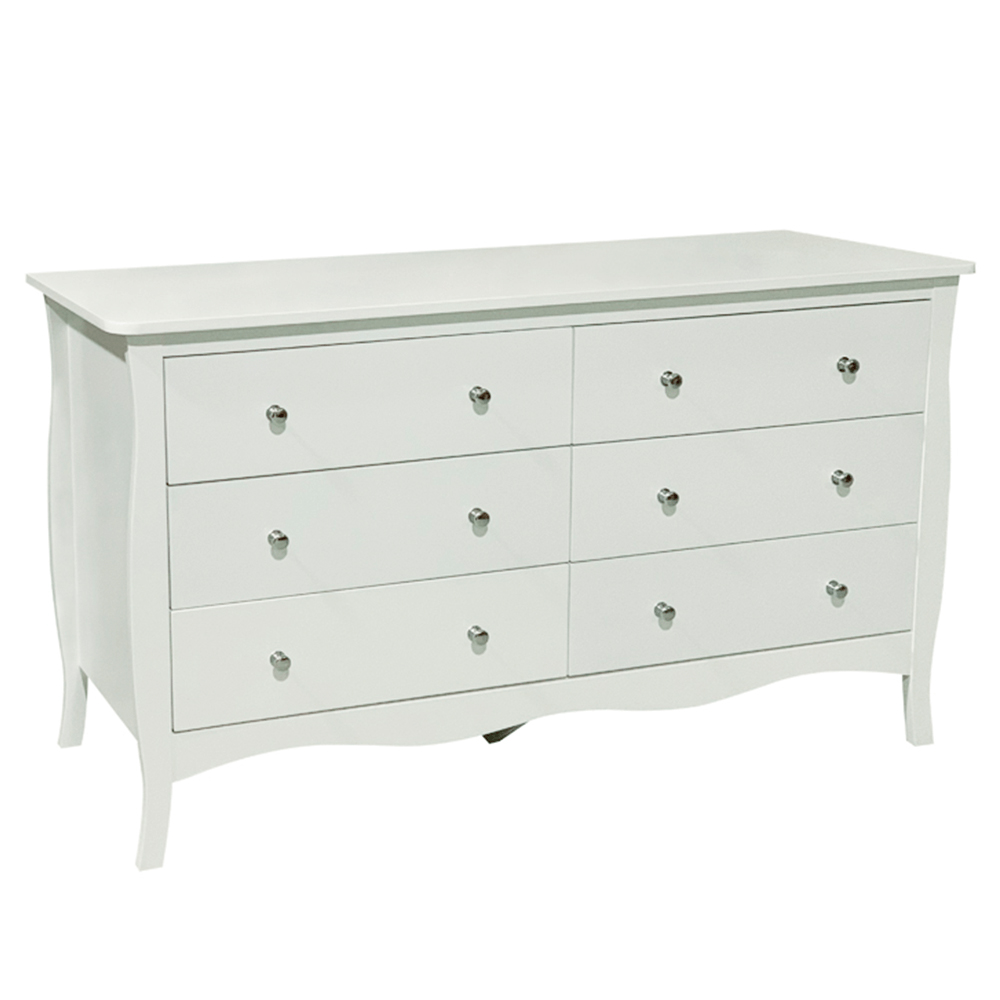Potrebujete oživiť váš domov? Trošku obmeniť nábytok a zväčšiť úložný priestor? Predstavujeme vám komodu Ertan, ktorá spĺňa všetky vaše požiadavky. Dýcha romantickým barkovovým štýlom. Stane sa moderným, pútavým nábytkom vo vašom domove. Vyrobená je z MDF v prevedení biela s extra vysokým leskom. Optimálny úložný priestor predstavuje šesť širokých zásuviek, ktoré sa otvárajú pomocou kovových úchytiek. Zásuvky sú zoradené po tri a umiestnené v dvoch radoch. Komoda stojí na štyroch vyšších nožičkách, ktoré podškrtli celý dizajn tohto kusu nábytku. Komoda Ertan zaistí jedinečný a štýlový domov.
