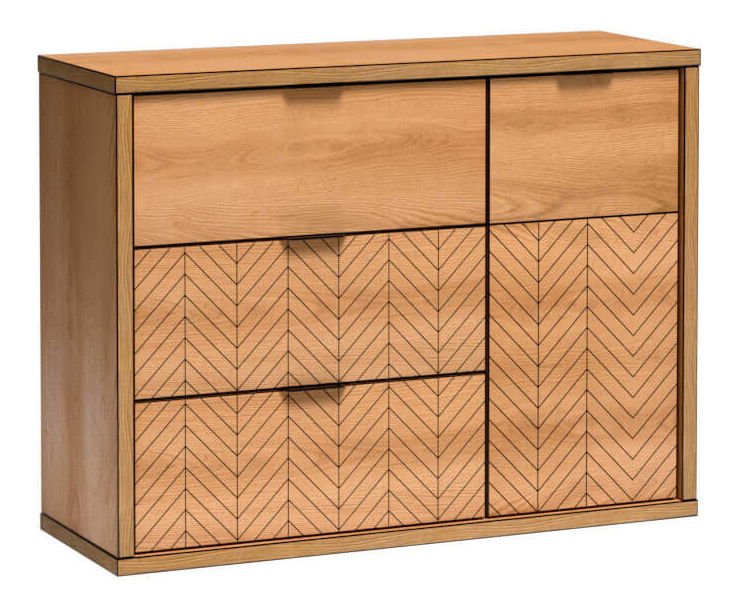 ZobraziťKomoda Figaro 05 (dub karamelový) je funkčná komoda z kolekcie Figaro s výškou 90 cm, šírkou 117.5 cm a hĺbkou 40.6 cm, ktorá sa vďaka menším rozmerom zmestí do každej domácnosti. Komoda ponúka dostatok miesta na uskladnenie vecí. Na ľavej strane nájdete 3 priestranné zásuvky na oblečenie, spodnú bielizeň a drobnosti. Na pravej strane sa nachádza skrinka s policou, ktorá rozdeľuje priestor na polovicu. Táto komoda je vyrobená z kvalitného duba karamelového, čo zaručuje jej dlhú životnosť a pevnosť. Ak hľadáte praktický a zároveň elegantný nábytok do vašej domácnosti, Komoda Figaro 05 (dub karamelový) je tou správnou voľbou pre vás.