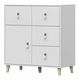 Komoda - Figu (biela) s výškou 96 cm, šírkou 90 cm a hĺbkou 45 cm je elegantným a praktickým kusom nábytku v škandinávskom štýle. Táto komoda je vyrobená z 16 mm hrubej drevotriesky, ktorá poskytuje pevnosť a odolnosť. Okraje sú doplnené 0,5 mm hrubými ABS hranami, čo zvyšuje jej kvalitu a estetický vzhľad. Komoda má štyri zásuvky s guľôčkovým vedením pre hladké a tiché otváranie a zatváranie, ako aj jedny dvere pre ďalší úložný priestor. Úchyty sú vyrobené z kože a majú tvar pútka, čo pridáva príťažlivý a originálny vzhľad. Komoda je vybavená drevenými nožičkami s výškou 14 cm, ktoré zabezpečujú stabilnú podporu a uľahčujú čistenie priestoru pod ňou. Táto komoda je ideálnym riešením pre štýlové usporiadanie a skladovanie rôznych predmetov od odevov po domáce potreby. S jej minimalistickým škandinávskym dizajnom a funkčnosťou je vhodná pre akýkoľvek moderný domov.