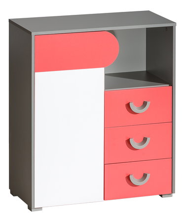 Komoda Flumo je ako stvorená do detskej izby. Hravý dizajn a príjemné farby sa deťom určite zapáčia a získajú dosť úložného priestoru na školské poteby, učebnice alebo hračky. Do komody sa dá uložiť napríklad aj oblečenie. Vyrobená je z laminovaných dosiek s ABS hranami.