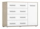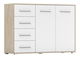 Komoda Fresi je štýlovým doplnkom každej modernej domácnosti. S výškou 95 cm a hĺbkou 45 cm ponúka dostatok úložného priestoru pre vaše veci. Je vyrobená z kvalitnej drevotriesky (16 mm) v kombinácii s bielou farbou a dubovým odtieňom Sonoma, čo z nej robí vizuálne príjemný kus nábytku. Vnútorný materiál je tiež z drevotriesky (16 mm) s ABS hranami hrúbky 0,5 mm, čo zaisťuje odolnosť a dlhú životnosť. Úchyty sú z PVC pre pohodlné otváranie zásuviek a plastové nožičky umožňujú jednoduchú manipuláciu s komodou. Táto komoda je skvelou voľbou pre každého, kto hľadá praktický a zároveň moderný nábytok pre svoju domácnosť.