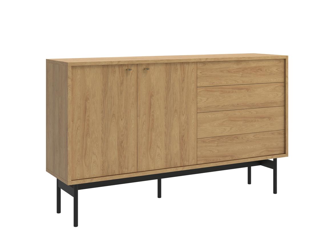 Komoda - Fresi 2 (biela + dub sonoma) je moderného vzhľadu a vhodná do rôznych miestností vášho domova. Táto komoda je vyrobená z drevotriesky s ABS hranami a má nožičky, podlhovasté plastové úchytky. Ponúka úložný priestor s 4 zásuvkami, 1 dvierkami a 2 poličkami. S výškou 96.5 cm, šírkou 135 cm a hĺbkou 45 cm je dostatočne priestranná na ukladanie vašich vecí. Komoda je dostupná v kombinácii biela + dub sonoma, čo poskytuje elegantný a štýlový vzhľad.