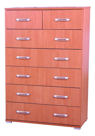 Vysoká komoda ponúka veľa úložného priestoru v piatich veľkých a dvoch malých zásuvkách. Umiestniť si ju môžete do predsiene, spálne či detskej alebo študentskej izby.