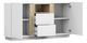 Komoda - Gabrielle 04 (dub artisan + biela) s výškou 96,6 cm, šírkou 180 cm a hĺbkou 42 cm. Táto moderná komoda je ideálnou voľbou pre minimalistov a milovníkov čistých línií. Vyrobená je z kvalitnej laminovanej dosky hrúbky 16 mm, čo zaručuje jej odolnosť a pevnosť. Komoda je vybavená ABS hranami, ktoré nielenže pridávajú na estetike, ale tiež zvyšujú jej odolnosť proti opotrebeniu. Bezúchytkový dizajn poskytuje hladký a nepretržitý vzhľad a zjednodušuje používanie a otváranie. Komoda stojí priamo na podlahe, čo zabezpečuje jej stabilnú a robustnú konštrukciu bez potreby nožičiek. Dve dvere skrývajú tri poličky s prekvapivo veľkým úložným priestorom, ideálnym pre rôzne predmety. Dve zásuvky navyše poskytujú ďalší priestor na organizáciu menších osobných vecí. Celkový vzhľad a funkčnosť tejto komody ju robia výnimočnou vo všetkých aspektoch a perfektne sa hodí do každej moderného domova.