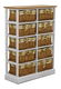 Pekná komoda, ktorá poteší najmä milovníkov prírodných materiálov a rustikálneho štýlu. Komoda má praktické využitie najmä v predsieňach, kúpeľniach, jedálňach ale aj obývacích izbách a pracovniach. Má desať prútených košíkov, ktoré sú ozdobené malou mašličkou. Farebné prevedenie komody je biela farba v kombinácii s medovou.