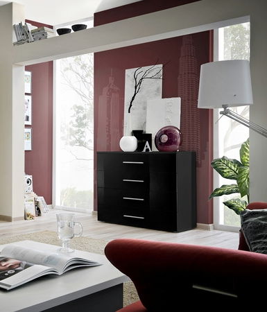 Komoda Go obsahuje štyri praktické zásuvky. Je vhodným doplnkom do interiéru, kde si chcete zvačšiť možnosti úložného priestoru. Jemné podlhovasté úchyty skvele dopĺňajú celkový dizajn komody. Vrchnú časť môžete využiť ako odkladací priestor na dekoračné predmety. Je vyrábaná v viacerých farebných prevedeniach a tak nie je problém ju skombinovať s ostatným nábytkom v miestnosti.