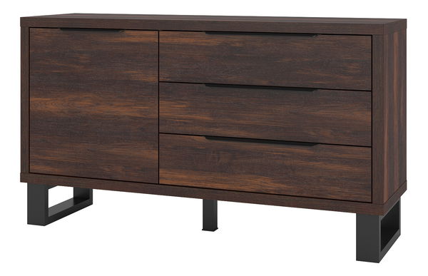 Komoda Harley Typ 47 (dub wallace) je ideálnym doplnkom pre každú izbu. Rozdelená na dve časti, dvierka s policami a tri zásuvky poskytujú dostatok úložného priestoru pre rôzne veci. Tento produkt zo série Harley stojí na kovových nožičkách, čo dodáva nábytku drsný a trúfalý vzhľad. Materiál, z ktorého je vyrobená, je kvalitná laminovaná doska, ktorá zaručuje trvácnosť a odolnosť. Komoda má výšku 83 cm a hĺbku 45 cm, takže sa zmestí do akéhokoľvek priestoru. Tento nábytok je skvelou voľbou pre tých, ktorí hľadajú elegantný a praktický kus nábytku s moderným dizajnom. S Komodou Harley Typ 47 (dub wallace) budete mať vždy všetko potrebné na dosah ruky.