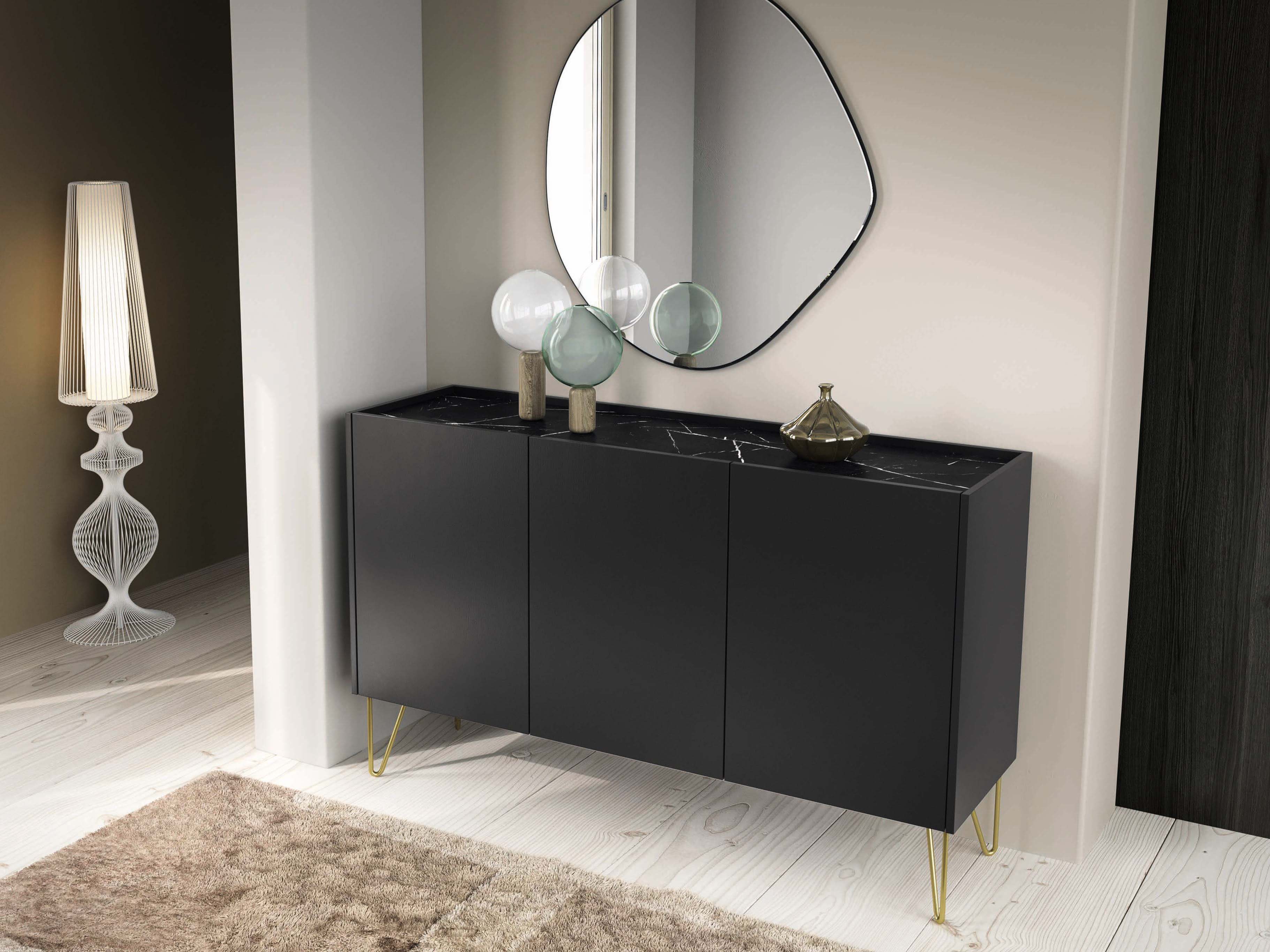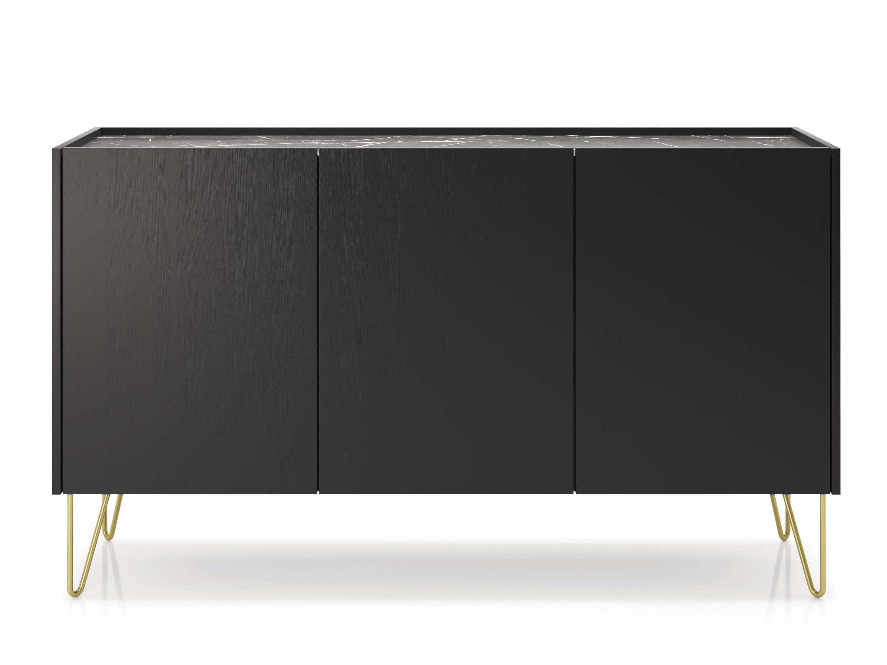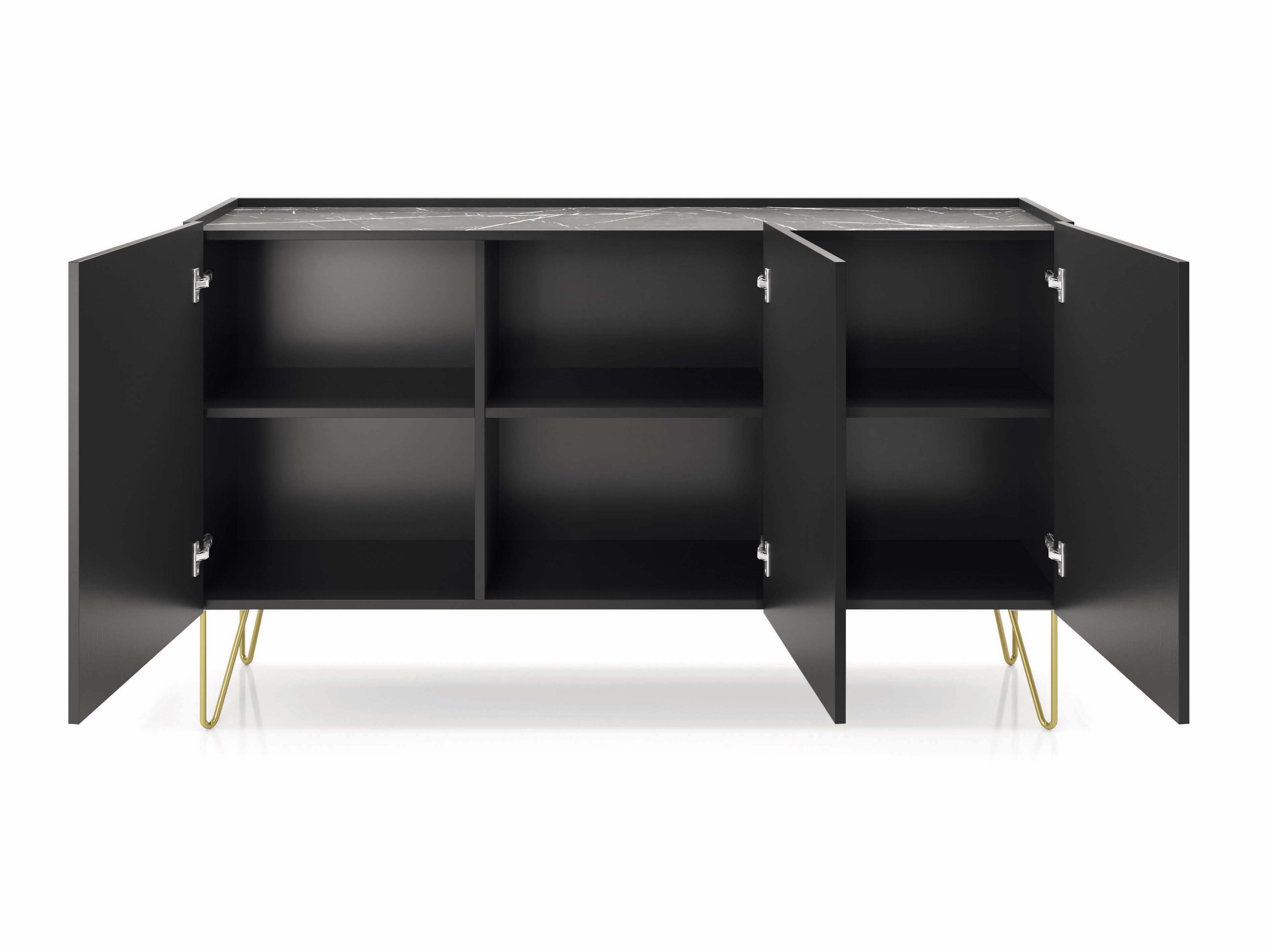 Komoda Harvest K144 (grafit čierny + mramor black royal + zlatá)