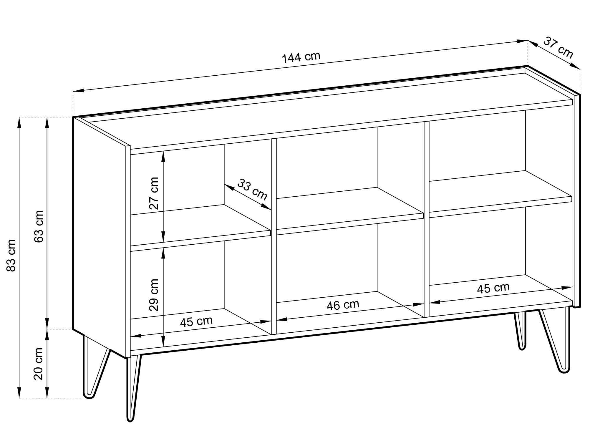Komoda Harvest K144 (grafit čierny + mramor black royal + zlatá) s výškou 83 cm a hĺbkou 37 cm je dokonalým kúskom nábytku pre vašu obývačku. Tento kus nábytku z kolekcie Harvest je elegantný a minimalistický a určite upúta vašu pozornosť farebnou kombináciou grafitového čierna a prírodného dreva so špeciálnym čiernym mramorom, ktorý dodáva luxusný nádych. Kombinácia s kovovými zlatými nožičkami dáva tejto komode moderný glamourový štýl. Táto komoda je vyrobená z laminovanej dosky s hrúbkou 16 mm a obsahuje 3 skrinky a 3 poličky. Systém otvárania "Push to open" a pánty Häfele zaručujú pohodlné používanie. Kovové nožičky s práškovým zlatým nástrekom majú priemer 1 cm a výšku 20 cm. Rozmery balíkov sú: č.1 - 22x14x21 cm/1,7 kg, č.2 - 148x9x40 cm/23 kg, č.3 - 71x9x51 cm/16,5 kg.