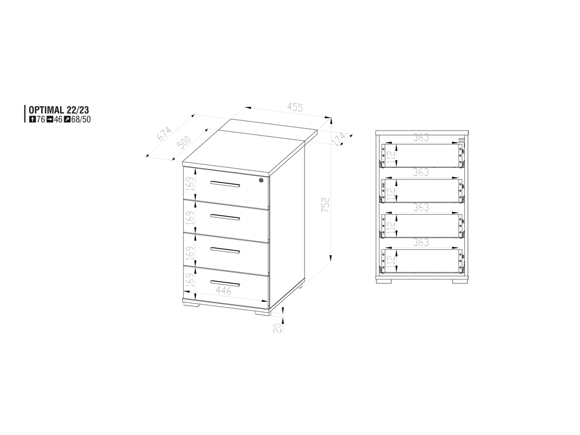 Kancelársky nábytok Optimal sa výborne hodí pre zariadenie klasických kancelárskych priestorov, rovnako ako kancelárií typu open space a konferenčných miestností. Poskytuje funkčný priestor a perfektnú organizáciu práce. Nábytok Optimal je celá paleta skriniek, políc a komôd, ktoré umožňujú optimálne ukladanie a archiváciu dokumentov v kancelárií. Široká škála písacích stolov a rôzneho tvaru stolíkov s pracovnými doskami z kvalitných laminovaných dosiek hrúbky 22 mm a okrajom ABS 2 mm, vztiahnutých na kovových podkladoch ponúka veľa možností usporiadania. Prepážky na písacie stoly oddeľujúce priestory pre zamestnancov umožňujú vytvoriť multi-systémy. Ďalšou dôležitou výhodou je štandardné vybavenie zámkami skríň a policových regálov a kontajnerov centrálnym zamykaním, čo umožňuje zachovať súkromie na svojom pracovisku.
