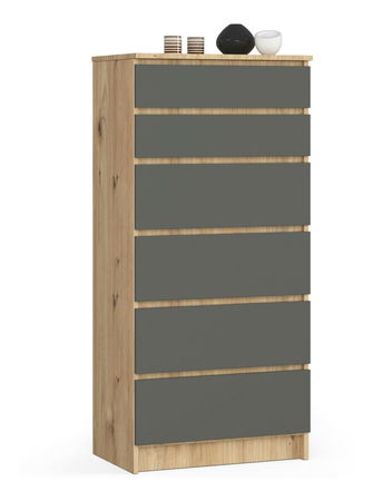 Komoda Kalista III je vynikajúci kus nábytku, ktorý prinesie do vášho domova štýlovú a praktickú atmosféru. S rozmermi 130 cm výšky, 60 cm šírky a 40 cm hĺbky je táto komoda dostatočne veľká na uspokojenie vašich úložných potrieb. Je vyrobená z kvalitného dubu artisan a prevedená v elegantnej sivej farbe, ktorá sa hodí k rôznym interiérovým štýlom. S tromi pevnými a spoľahlivými zásuvkami poskytuje dostatok miesta na uloženie vašich vecí. Komoda Kalista III je skvelou voľbou pre tých, ktorí hľadajú funkčný a štýlový kus nábytku pre svoj domov.