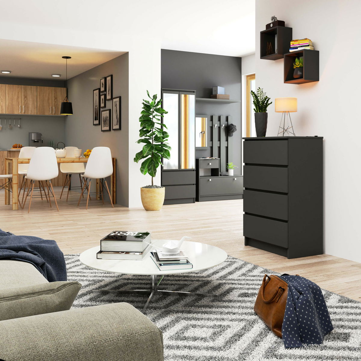 Komoda Kalista IV (grafit sivý)