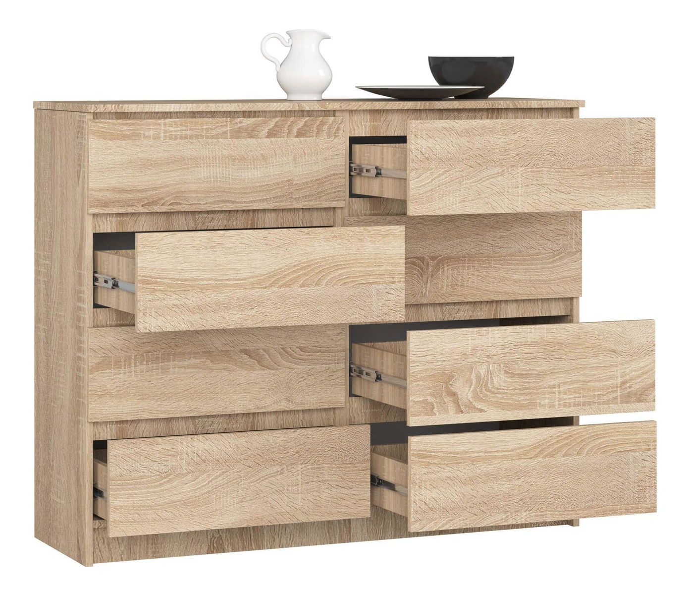 Komoda Kapil II v odtieni dub sonoma je praktickým a štýlovým doplnkom do každej domácnosti. Jeho moderný dizajn s čistými líniami a prirodzeným dreveným dekorom sa ľahko hodí k rôznym štýlom zariadenia interiéru, či už preferujete minimalistický, škandinávsky alebo klasický štýl.