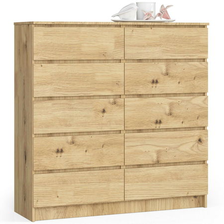 Komoda Kapil III je vyrobená z kvalitného dubového dreva a je vysoká 121 cm, široká 120 cm a hlboká 40 cm. Táto komoda je ručne vyrábaná a má štýlový a tradičný vzhľad. Je vybavená dostatočným úložným priestorom s rôznymi veľkými a malými zásuvkami a poličkami. Vďaka svojej solídnej konštrukcii je táto komoda veľmi odolná a trvácna. Je ideálna pre tých, ktorí hľadajú štýlový a praktický nábytok do svojho domova. S komodou Kapil III si môžete vytvoriť útulný a dobre usporiadaný interiér, ktorý bude vyhovovať vašim potrebám.