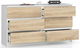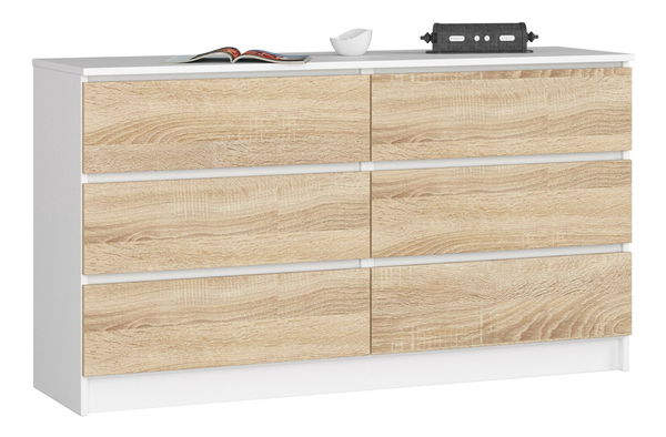 Komoda Keanu II je moderným a praktickým nábytkom, ktorý zvýši štýlovosť a organizovanosť vášho domova. S výškou 77 cm, šírkou 138 cm a hĺbkou 40 cm poskytuje dostatok úložného priestoru pre vaše veci. Je vyrobená z kvalitného materiálu - biely lak a dub sonoma - čo zabezpečuje jej pevnosť a odolnosť. Svojím elegantným dizajnom Komoda Keanu II dokonale zapadne do akéhokoľvek interiéru a poskytne priestor na usporiadanie a uloženie oblečenia, kníh či iných predmetov. Vytvorte si svoj ideálny priestor s Komodou Keanu II.