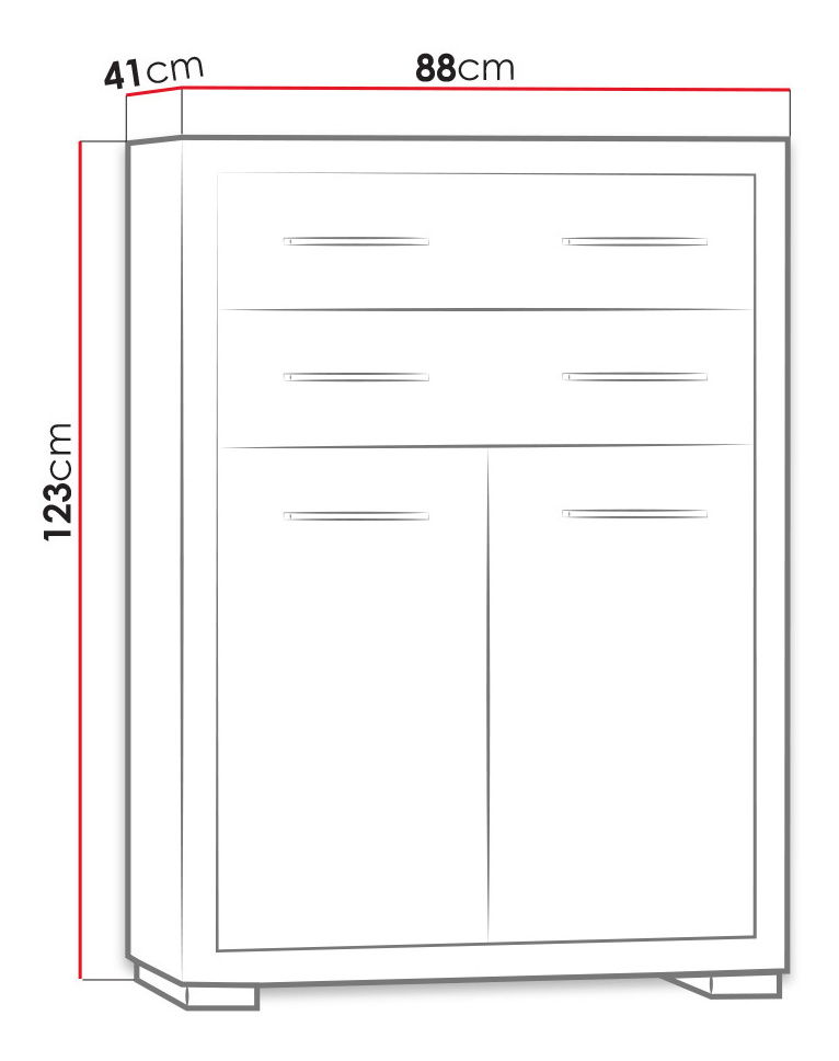 ZobraziťVysoká komoda je ideálnou voľbou pre tých, ktorí hľadajú pohodlie a štýl. Kelly KL07 je nadčasová komoda, vyznačujúca sa jednoduchým, nekomplikovaným dizajnom a módnymi farbami, ktoré dokonale ladia s usporiadaním dnešných izieb. Vysoká komoda Kelly je vybavená dvoma priestrannými zásuvkami s plným výsuvom a skrinkami, ktoré vám umožnia usporiadať potrebné predmety na každodenné použitie. Vďaka komode Kelly budete mať v domácnosti vždy poriadok! Komoda je vyrobená z pevnej laminovanej dosky, ktorej okraje sú vystužené ABS dýhou, čo zvyšuje životnosť a zaisťuje bezpečnosť pri používaní. Tento model je k dispozícii v niekoľkých univerzálnych farbách, vďaka ktorým prispôsobíte komodu svojmu interiéru! Rozmery : šírka: 88 cm, výška: 123 cm, hĺbka: 41 cm Farby : je možné zvoliť vyššie Prevedenie : horné dosky a boky vyrobené z laminovanej dosky do hrúbky 48 mm, fronty z laminátovej dosky s hrúbkou 16 mm, ABS hrana: horné dosky a boky 0,8 mm, fronty 0,5 mm, plastové úchyty, nožičky z drevotriesky o hrúbke 32, zásuvky s plným výsuvom Rozmery výrobku sú uvedené v centimetroch a môžu sa líšiť od skutočných o ± 3 cm. Rozmery nábytku nemeníme na prianie zákazníka Záruka : 24 mesiacov