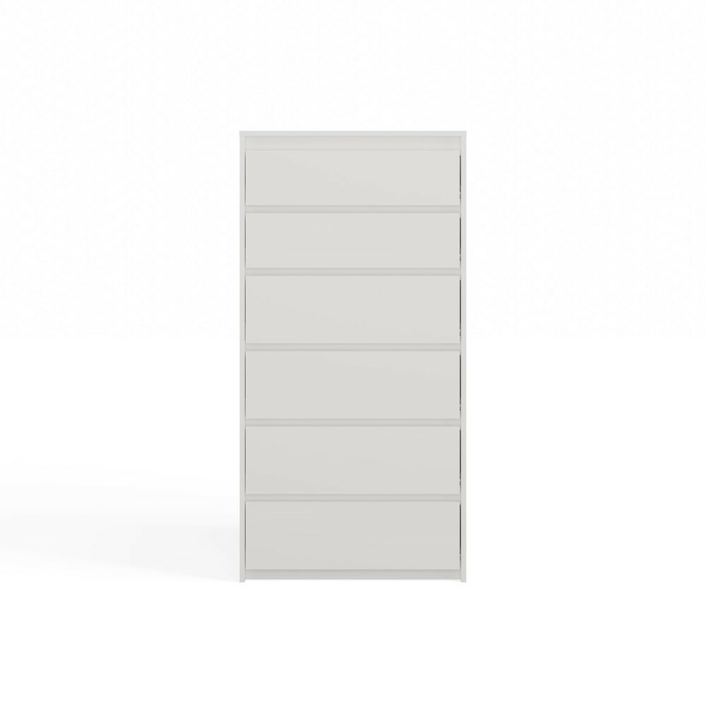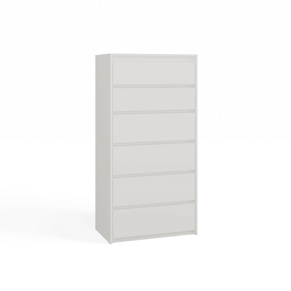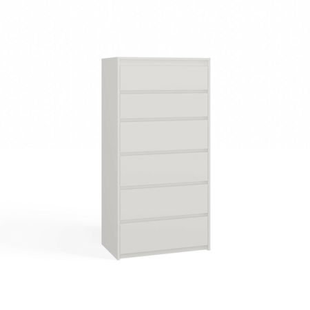 Komoda Kentero 2 v elegantnej bielej farbe je ideálnym riešením pre moderné interiéry, kde sa stretáva funkčnosť s minimalistickým dizajnom. S rozmermi 70 cm na šírku a 139 cm na výšku ponúka dostatok úložného priestoru v šiestich priestranných zásuvkách, ktoré sú vybavené kvalitnými valčekovými vodidlami pre pohodlné a bezpečné používanie. Bezúchytové fronty prispievajú k jej modernému vzhľadu, zatiaľ čo odolné materiály, ako laminovaná drevotrieska a ABS hrany, zaručujú dlhú životnosť. Tento kus nábytku skvele doplní vašu spálňu, obývačku alebo detskú izbu.