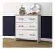 Komoda - Klaudia 02 (biela + dub sonoma) výška 96 cm šírka 108 cm Biela + Dub sonoma hĺbka 40 cm Táto komoda zo série Klaudia v minimalistickom a námorníckom štýle je vyrobená z 16 mm hrubej laminovanej dosky s ABS hranami. Jej unikátny dizajn s úchytmi z lana poskytuje námornícky vzhľad. Komoda stojí priamo na podlahe vďaka predĺženým bočným stenám, čo zaisťuje jej stabilitu. Svojimi tromi zásuvkami ponúka dostatok úložného priestoru a zachováva zároveň čistý a jednoduchý vzhľad.