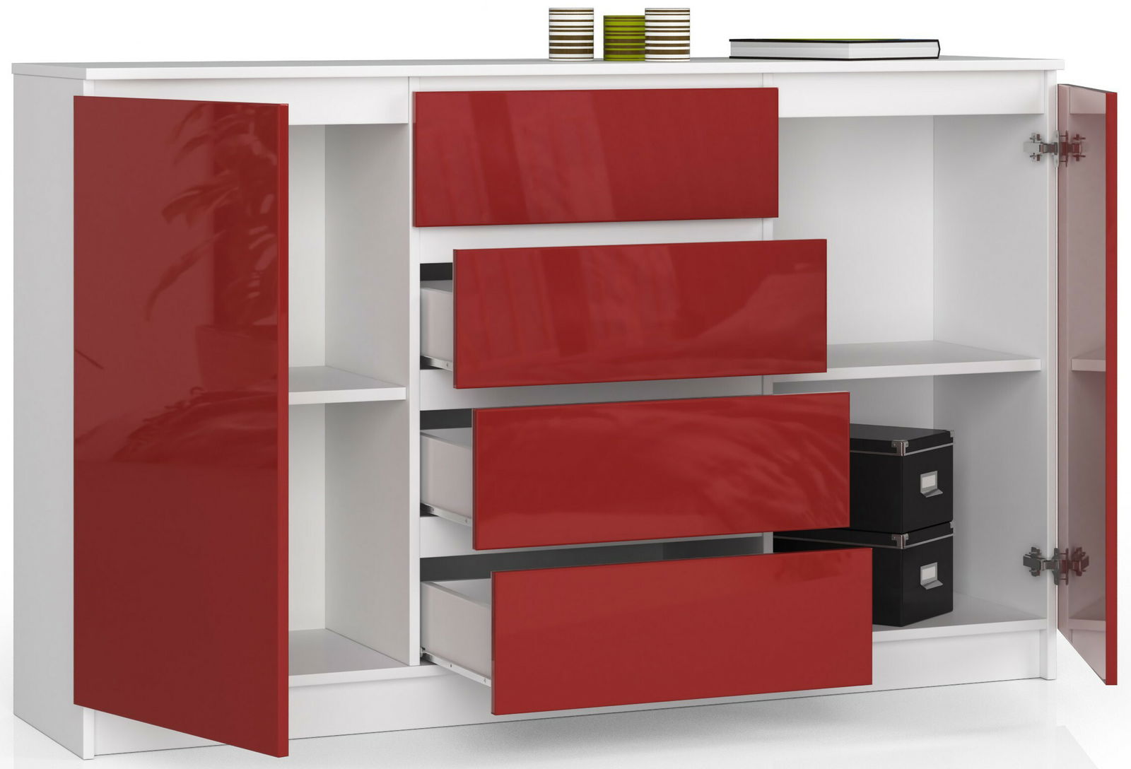 ZobraziťKomoda Koa (červený lesk) je štýlový a praktický kus nábytku pre váš domov. S výškou 99 cm, šírkou 160 cm a hĺbkou 40 cm ponúka dostatok úložného priestoru pre vaše veci. Táto komoda je vyrobená z kvalitného materiálu a má elegantný lesklý povrch v červenej farbe, čo jej dodáva moderný vzhľad. Má viacero výsuvných zásuviek a skriniek, kde môžete usporiadať a uložiť svoje oblečenie, doplnky alebo iné predmety. Svojím dizajnom sa dokonale hodí do každej izby a prinesie do vášho interiéru štýlový a elegantný dotyk. Nechajte sa očariť komodou Koa (červený lesk) a doplňte svoj domov kusom nábytku, ktorý je praktický, funkčný a esteticky príjemný.