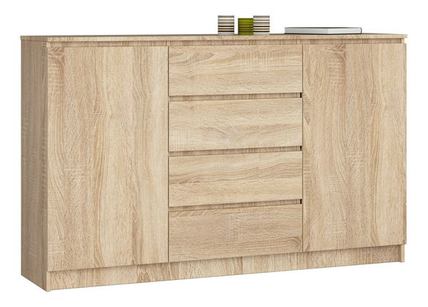 Komoda Koa (Dub Sonoma) je štýlový kus nábytku, ktorý sa vyníma svojim moderným designom a praktickosťou. S jeho výškou 99 cm, šírkou 160 cm a hĺbkou 40 cm poskytuje veľkorysú úložnú kapacitu, ideálnu pre organizáciu a ukladanie vecí. Vyhotovená z kvalitného dubu sonoma, táto komoda prináša do vášho interiéru prírodný a teplý vzhľad. S niekoľkými šuplíkmi a poličkami ponúka dostatok miesta pre usporiadanie oblečenia, kníh, dekorácií a ďalších vecí. Bezproblémovo sa zapadá do akéhokoľvek štýlu interiéru a dokonale dopĺňa váš domov. Investujte do tejto kvalitnej komody a získajte skvelý kus nábytku, ktorý spĺňa vaše potreby aj estetické požiadavky.