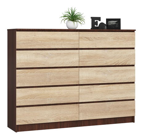 Komoda Koa II (wenge + dub sonoma) je praktický a elegantný kus nábytku, ktorý prinesie štýl a organizáciu do vášho domova. S výškou 121 cm, šírkou 160 cm a hĺbkou 40 cm, táto komoda ponúka dostatok úložného priestoru pre vaše veci. Vyhotovená z kvalitného materiálu Wenge + Dub sonoma, je táto komoda odolná a dlhotrvajúca. S jej moderným dizajnom a tmavými tónmi, Komoda Koa II (wenge + dub sonoma) sa dokonale hodí do každej izby. Bez ohľadu na to, či ju umiestnite do obývačky, spálne alebo predsieňa, táto komoda bude skvelým doplnkom vášho interiéru.