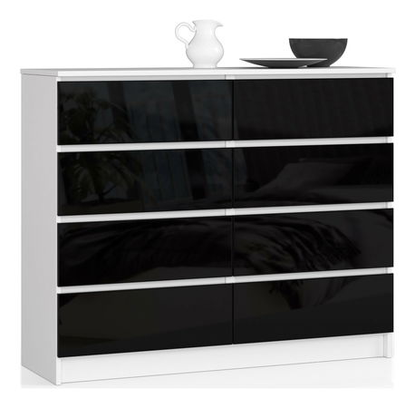 Komoda Kohen (čierny vysoký lesk) je elegantný nábytok, ktorý sa skvele hodí do akéhokoľvek interiéru. S výškou 99 cm, šírkou 120 cm a hĺbkou 40 cm poskytuje dostatok úložného priestoru pre vaše veci. Jeho čierny vysoký lesk dodáva komode sofistikovaný a moderný vzhľad. S jeho pomocou môžete ľahko organizovať svoje oblečenie, knihy alebo rôzne osobné predmety. Komoda Kohen je vyrobená z kvalitných materiálov, čo zaručuje jej dlhú životnosť a odolnosť. S touto komodou získate nielen praktický nábytok, ale aj štýlový doplnok pre váš domov.