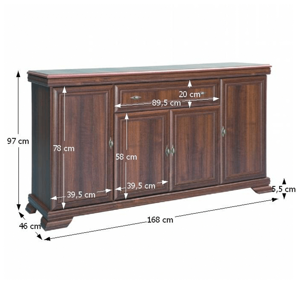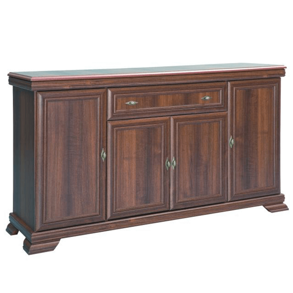 Komoda Kraz - KK4 je praktickým a elegantným doplnkom do každej obývacej izby. Je široká a ponúka 2 až 3 zásuvky a 4-dielnu konštrukciu so dvierkami. Zásuvky sú vybavené kovovými výsuvami pre pohodlné používanie. Táto komoda je vyrobená v rustikálnom štýle, ktorý okamžite pridáva charakter a osobnosť do vášho interiéru. So svojimi dvierkami a zásuvkami ponúka dostatok úložného priestoru pre vaše veci. Komoda Kraz - KK4 je vyrobená z kvalitného dreva, ktoré je pevné a odolné voči poškodeniu. Je to ideálna voľba pre každého, kto hľadá praktický a krásny kus nábytku do svojho domova.