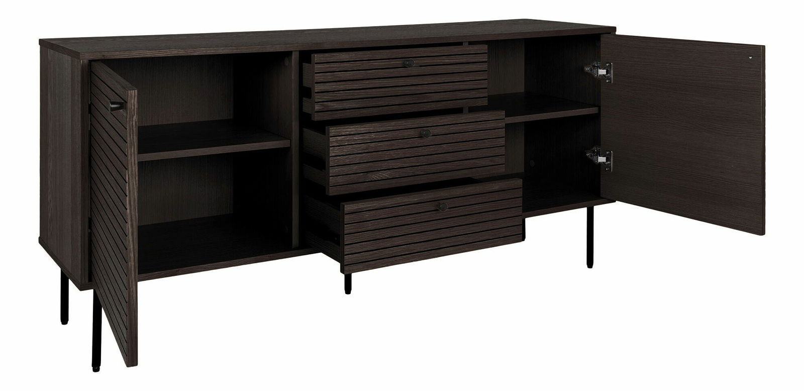 Dubová dyha, melamín, MDF, oceľ