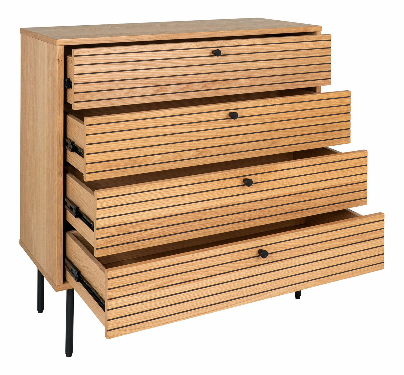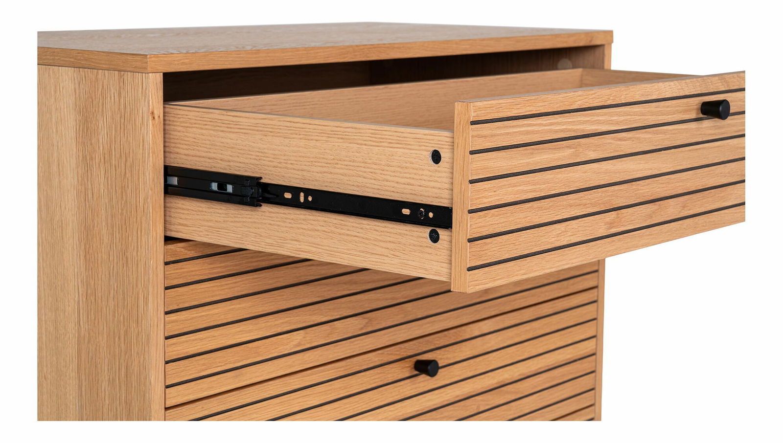 Dubová dyha, melamín, MDF, oceľ