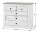 Kvalitná laminovaná drevotrieska v bielej farbe, dvierka (fronty) sú z kvalitnej drevovláknitej dosky - MDF. Krásne kovové úchytky, zvýrazňujúce efekt provensálskeho štýlu. Nábytok je vybavený mechanizmom zabezpečujúcim tlmené (jemné) dovieranie dvierok a zásuviek s cieľom nikoho v spálni pri otváraní nevyrušovať. Dizajnová horná doska s ornamentami na hranách v sivo-béžovom prevedení.