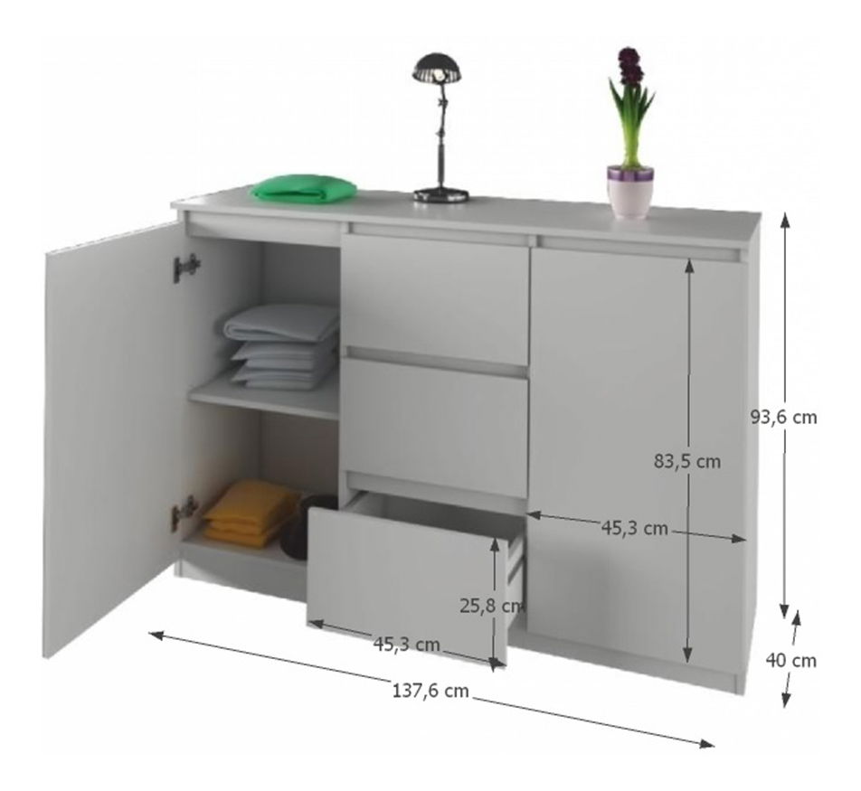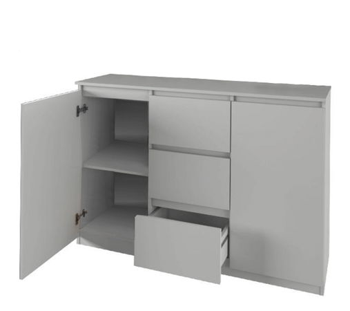 Trendová komoda, ktorá sa môže umiestniť skoro do každej miestnosti. Vybavená je 3 dvierkami, bezúchytovým systémom otvárania a tromi zásuvkami umiestnenými nad sebou uprostred. Materiál je DTD laminovaná, prevedenie dub sonoma.