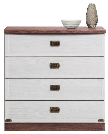 Klasická 4-zásuvková komoda. Zaujímavé úchyty na dvierkach a spodnej časti v prevedení mosadz.