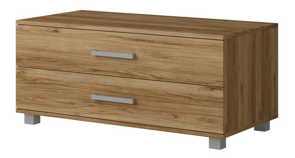 Atraktívny a elegantný nábytok, ktorý jedinečným spôsobom vyplní Váš interiér. Prvky z tohto modelového radu vďaka modernému dizajnu a farbe dreva spravia z Vášho bytu jedinečné miesto. Nábytok je vyrobený z laminovanej dosky, ktorá je chránená 2mm ABS hranou. Hrúbka dosky korpusu je 22 mm a frontov 16 mm. Pri vitrínach je použitá strieborná MDF doska. V posteliach je namiesto roštu s lamelami použitá doska.