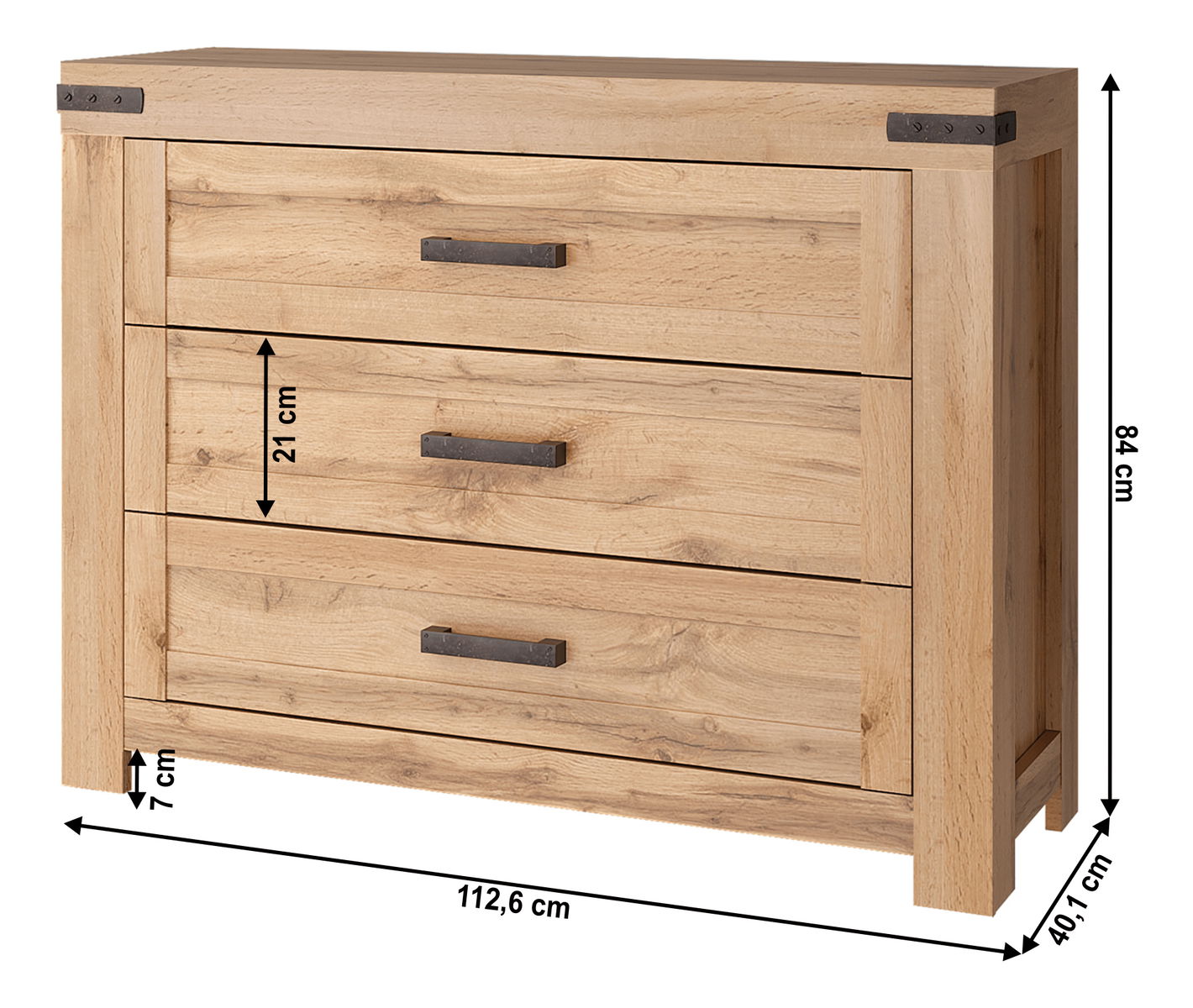 Komoda Mateo 2D3S (dub wotan) s výškou 84 cm, šírkou 112.6 cm a hĺbkou 40.1 cm je ideálnym doplnkom pre vašu obývaciu izbu, jedáleň, spálňu alebo predsieň. Jej jednoduchý a štýlový dizajn pridáva pocit čistoty a sviežosti do vášho interiéru. Komoda ponúka dostatok úložného priestoru v troch šuplíkoch, čím vám pomôže udržať veci usporiadané a poriadok v miestnosti. Svojou kvalitou a funkčnosťou je táto komoda skvelou voľbou pre každú domácnosť.