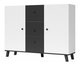 Trojdielna komoda Milcombe v modernom dizajne má tri zásuvky a dve skrinky, v ktorých je jedna polička.