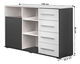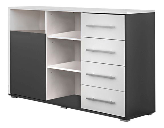 Pri zariaďovaní detskej či študentskej izby sa riaďte rozumom a skĺbte aktuálne detské trendy s klasickými funkčnými prvkami. Nezabudnite však na to, že detská izba by nemala byť len účelovo zariadená, ale mala by sa vyznačovať osobitou atmosférou. O detskej izbe sa hovorí aj ako o ríši fantázie. Komoda Milly bude vo vašich deťoch rozvíjať zvedavosť, fantáziu a tiež kreativitu. Vyrobená je z DTD laminovanej v trendových farbách antracit a biela. Poskytuje úložný priestor v podobe jednej skrinky, otvoreného úložného priestoru a štyroch zásuviek. S komodou Milly vybudujete útulnú a bezpečnú izbu.