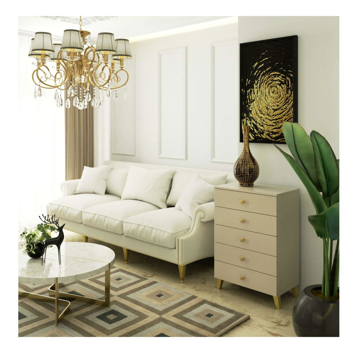 ZobraziťKomoda Mobian 5 je elegantný a funkčný kus nábytku ideálny pre moderné interiéry. Vyrobená z kvalitnej laminovanej ABS dosky, je navrhnutá na dlhú životnosť. Zlaté nožičky a úchytky dodávajú komode luxusný vzhľad, ktorý upúta pozornosť. Disponuje štyrmi priestrannými zásuvkami s rozmermi 51,5 cm na šírku a 35 cm na hĺbku, čo poskytuje dostatok úložného priestoru. Zásuvky sú zamykateľné, čím zaisťujú bezpečnosť uložených predmetov. Komoda je balená v kompaktnom balíku o rozmeroch 5 x 46,5 x 13,5 cm a váži 27,4 kg, čo umožňuje ľahké prenášanie a montáž.