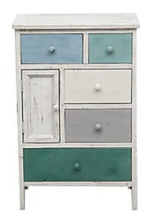 Komoda, ktorá zaujme najmä ľudí s umeleckým cítením alebo milovníkov tradičnejšieho nábytku. Je vyrobená z masívneho dreva. Zásuvky a dvierka komody sú rôznych farieb. Komoda stojí na menších nožičkách. Menšie zásuvky môžete využiť na rôzne drobnosti a malé predmety. Farebné prevedenie komody je biela farba.