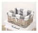Zariaďte si vaše domácnosti v rustikálnom štýle, ktorý je čoraz populárnejší. Táto komoda má pevný drevený rám a tri krásne prútené košíky ozdobené mašličkou a s pásikavým poťahom. Bude krásnym doplnkom vo vašich predsieňach, spálňach, obývacích izbách alebo kúpeľniach. Farebné prevedenie komody je biela farba v kombinácii so sivou.