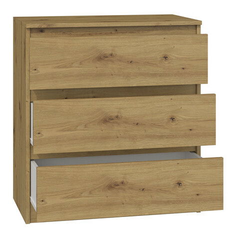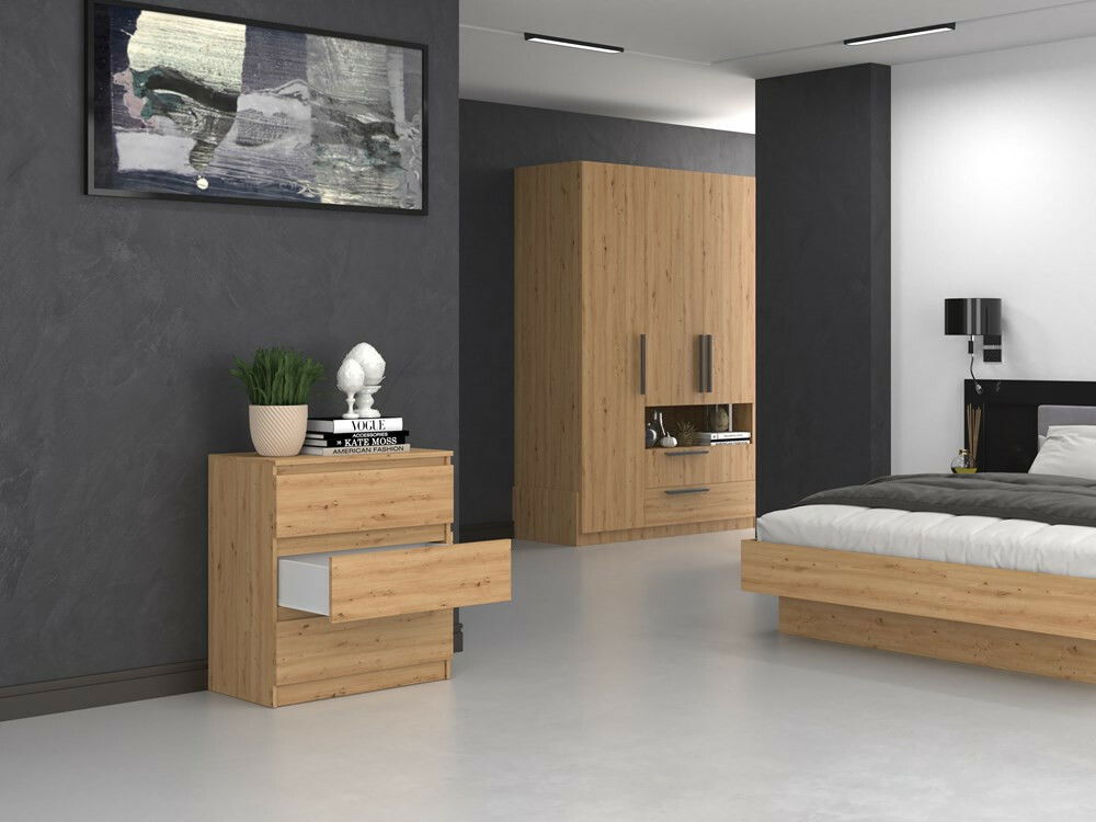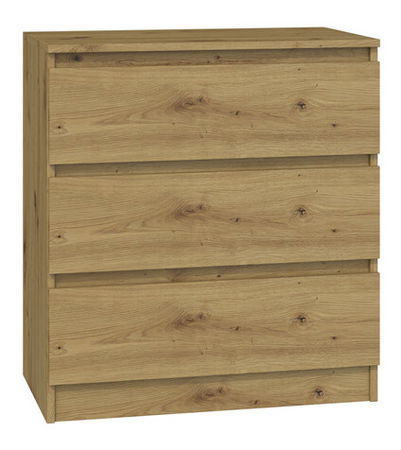 Komoda Musecalo 1 v elegantnej farbe dub artisan je ideálnym riešením pre moderné interiéry, či už do spálne, obývačky alebo detskej izby. Jej minimalistická konštrukcia a bezúchytové fronty zásuviek poskytujú nielen praktické využitie, ale aj štýlový vzhľad, ktorý osloví každého, kto ocení kombináciu jednoduchosti a elegancie. Vyrobená z kvalitnej laminovanej drevotriesky, táto komoda ponúka dostatok úložného priestoru a zabezpečuje pohodlné a bezpečné používanie vďaka zásuviekám na valčekových vodidlách. Vytvorte si útulný a moderný domov s komodou Musecalo 1.