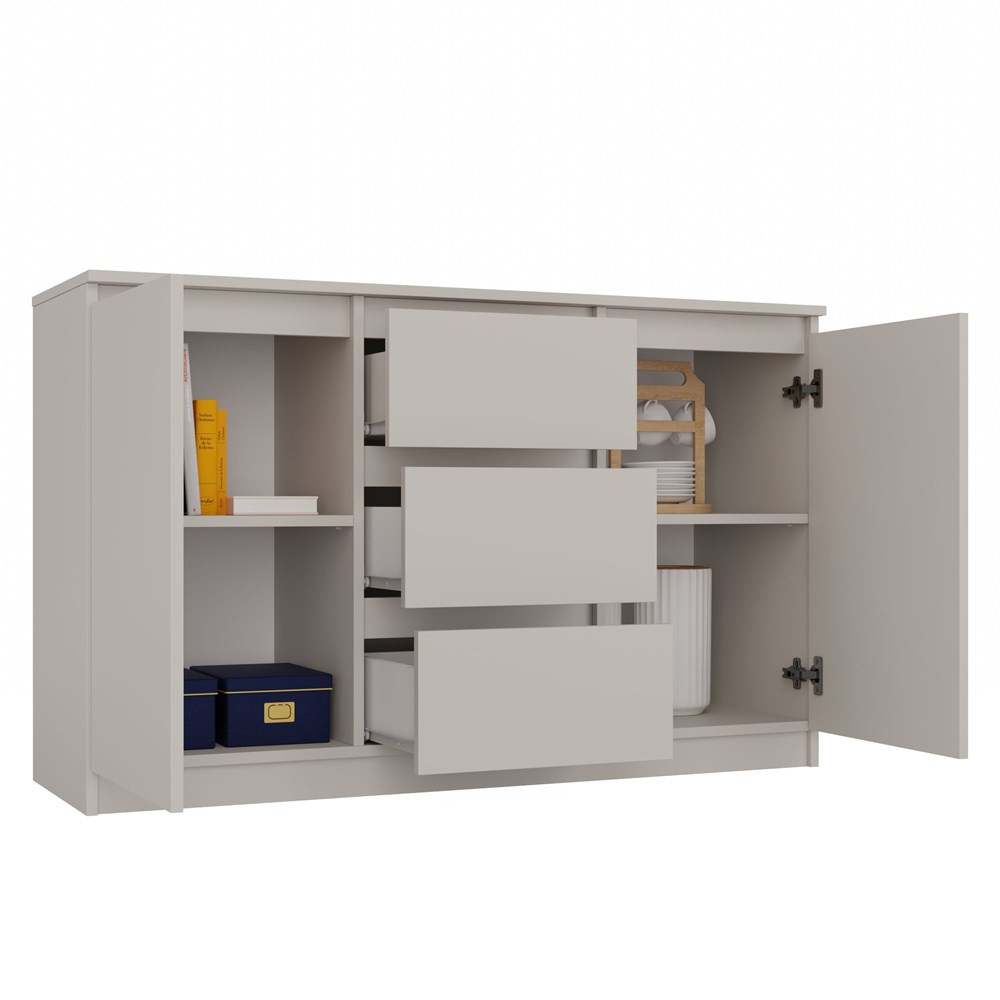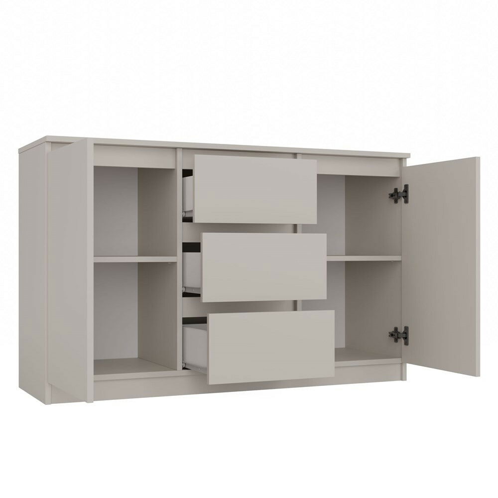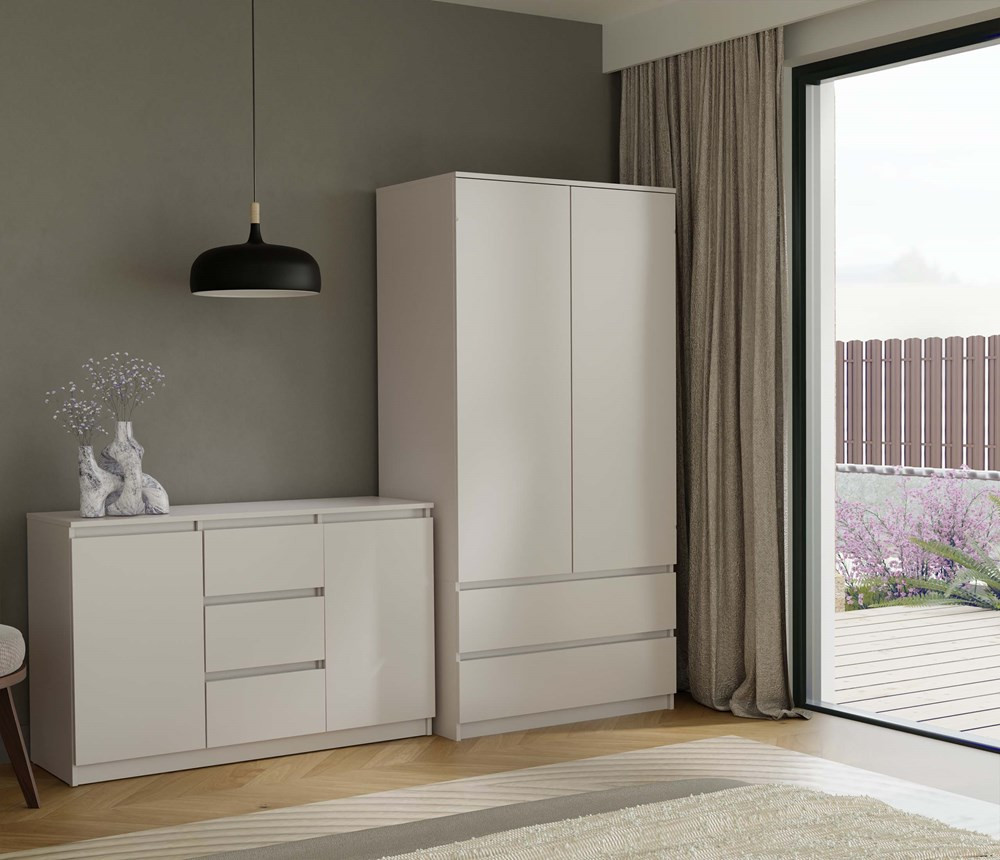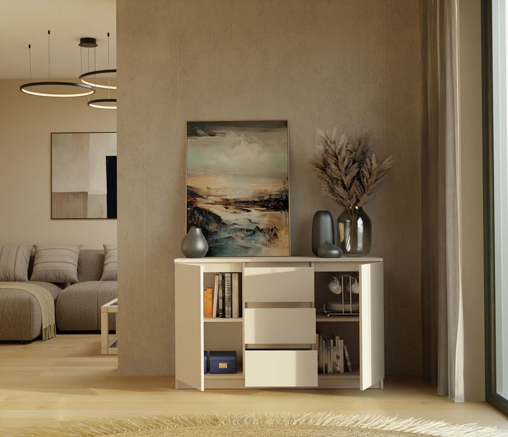 Komoda Musecalo 11 v elegantnej farbe kašmír je ideálnym riešením pre moderné interiéry, kde sa stretáva funkčnosť s estetikou. S minimalistickou konštrukciou a bezúchytovými frontami ponúka praktické úložné riešenie s dvoma dverami a tromi priestrannými zásuvkami, ktoré uľahčujú organizáciu vašich vecí. Vyrobená z kvalitnej laminovanej drevotriesky, je odolná voči poškriabaniu a vlhkosti, čo zaručuje jej dlhú životnosť. Komoda Musecalo 11 sa skvele hodí do spálne, obývačky či detskej izby, pričom jej nadčasový dizajn obohatí každý priestor.