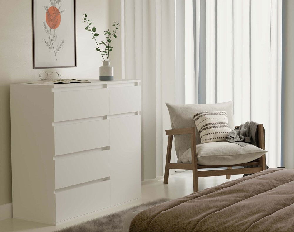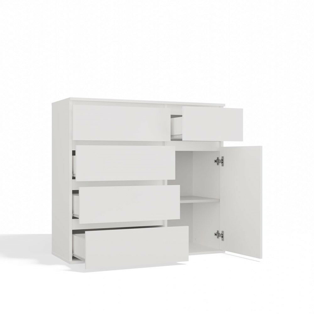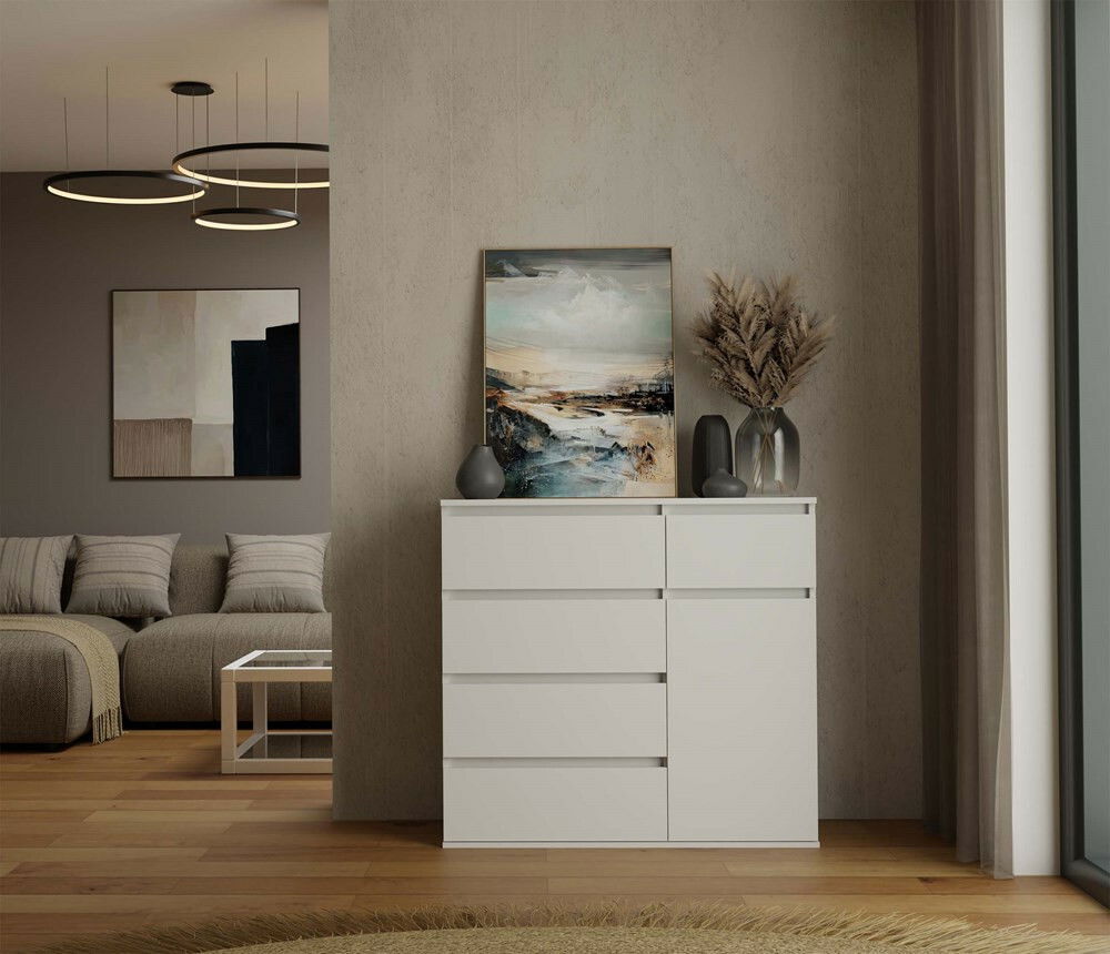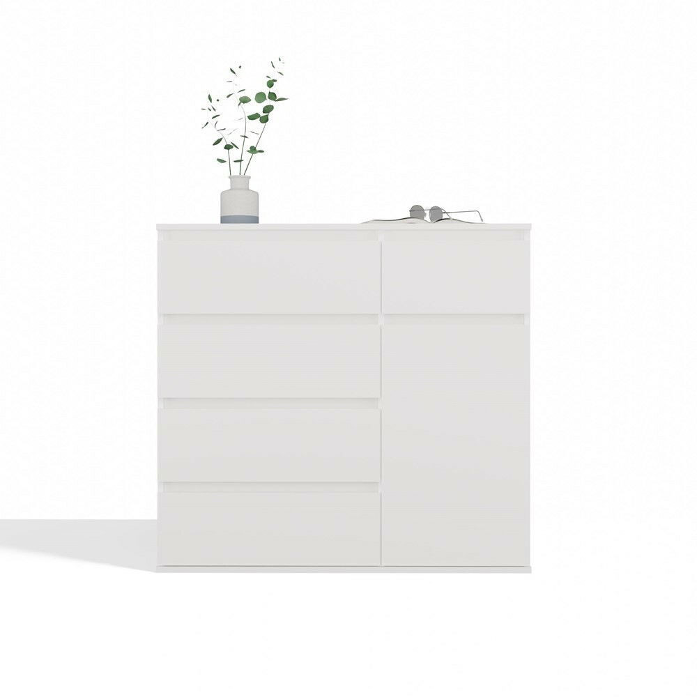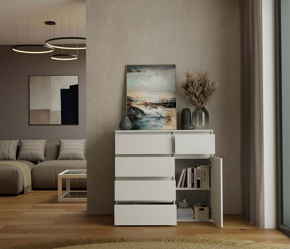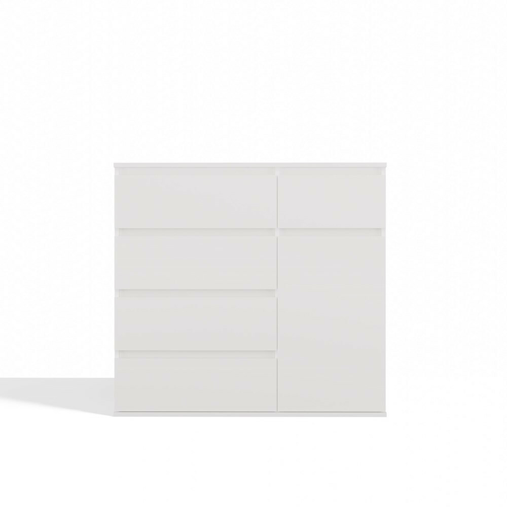 ZobraziťKomoda Musecalo 14 v elegantnej bielej farbe je ideálnym riešením pre moderné aj klasické interiéry. S minimalistickou konštrukciou a jednoduchými líniami ponúka nielen estetický zážitok, ale aj praktické využitie. Je vybavená jednými dverami a piatimi priestrannými zásuvkami, čo umožňuje efektívne usporiadanie oblečenia, dokumentov a iných osobných vecí. Korpus a fronty sú vyrobené z laminovanej drevotriesky, ktorá je odolná voči poškodeniu a ľahko sa udržuje. Komoda Musecalo 14 je skvelým doplnkom do každej miestnosti, ktorý zabezpečí poriadok a štýlový vzhľad.