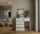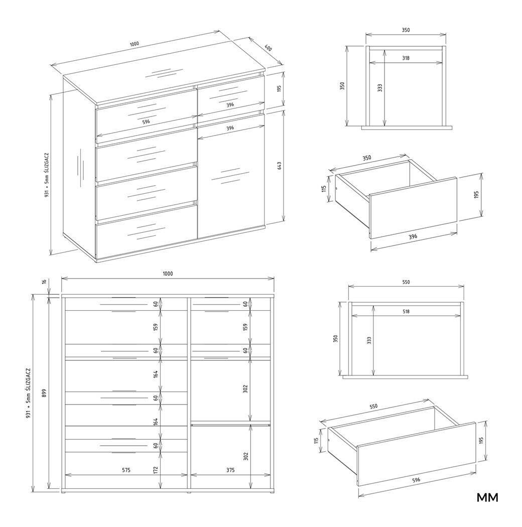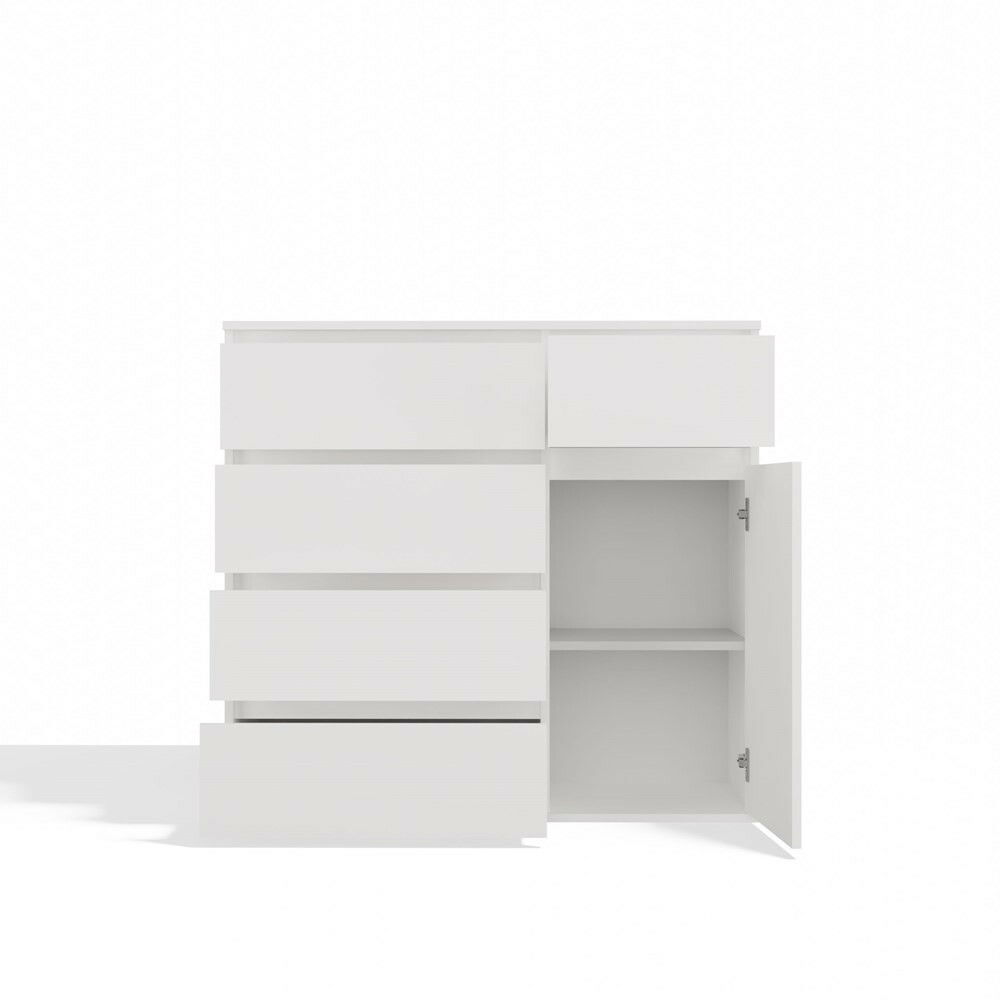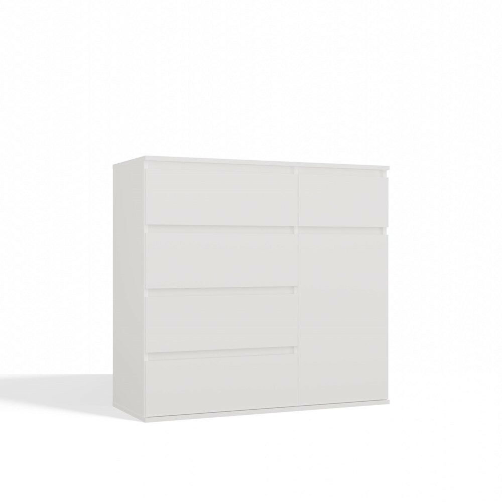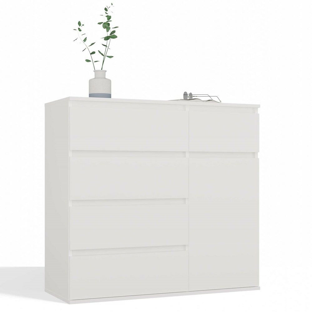 Komoda Musecalo 14 v elegantnej bielej farbe je ideálnym riešením pre moderné aj klasické interiéry. S minimalistickou konštrukciou a jednoduchými líniami ponúka nielen estetický zážitok, ale aj praktické využitie. Je vybavená jednými dverami a piatimi priestrannými zásuvkami, čo umožňuje efektívne usporiadanie oblečenia, dokumentov a iných osobných vecí. Korpus a fronty sú vyrobené z laminovanej drevotriesky, ktorá je odolná voči poškodeniu a ľahko sa udržuje. Komoda Musecalo 14 je skvelým doplnkom do každej miestnosti, ktorý zabezpečí poriadok a štýlový vzhľad.