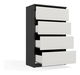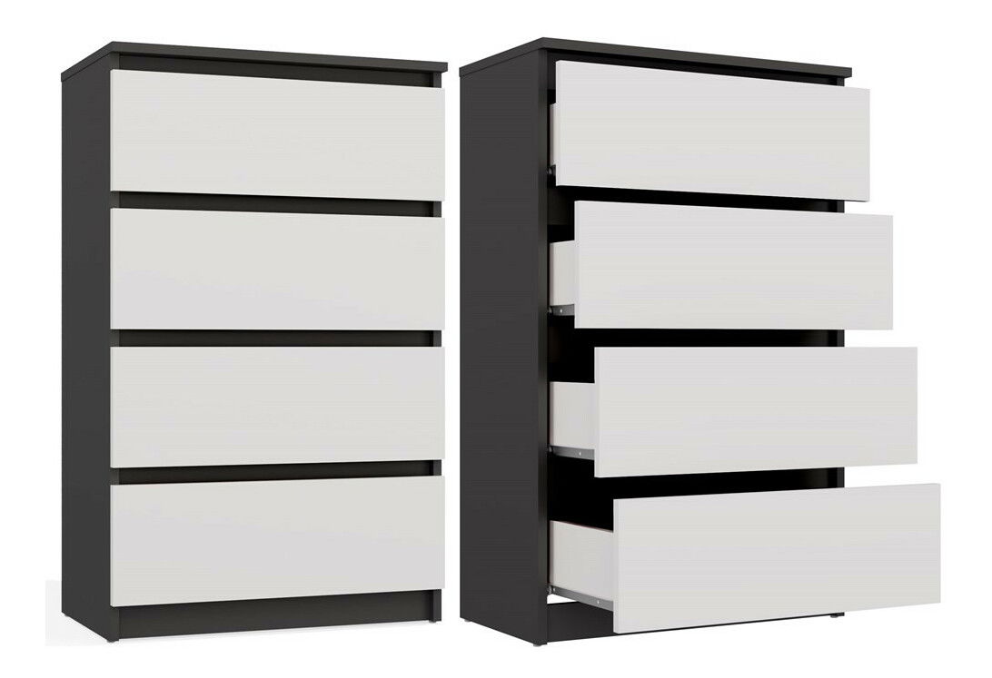 ZobraziťKomoda Musecalo 2 v elegantnej kombinácii antracitovej a bielej farby je ideálnym riešením pre moderné interiéry. Jej minimalistická konštrukcia bezúchytových frontov zásuviek zabezpečuje nielen pohodlné používanie, ale aj štýlový vzhľad, ktorý osloví každého, kto preferuje jednoduchosť a eleganciu. Vyrobená z kvalitnej laminovanej drevotriesky s ABS hranami, táto komoda je odolná voči mechanickému a chemickému poškodeniu. S rozmermi 70 cm na šírku a 97 cm na výšku ponúka dostatok úložného priestoru pre vaše veci. Je to praktický a estetický doplnok do vašej spálne, obývačky alebo detskej izby
