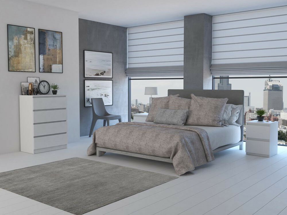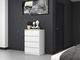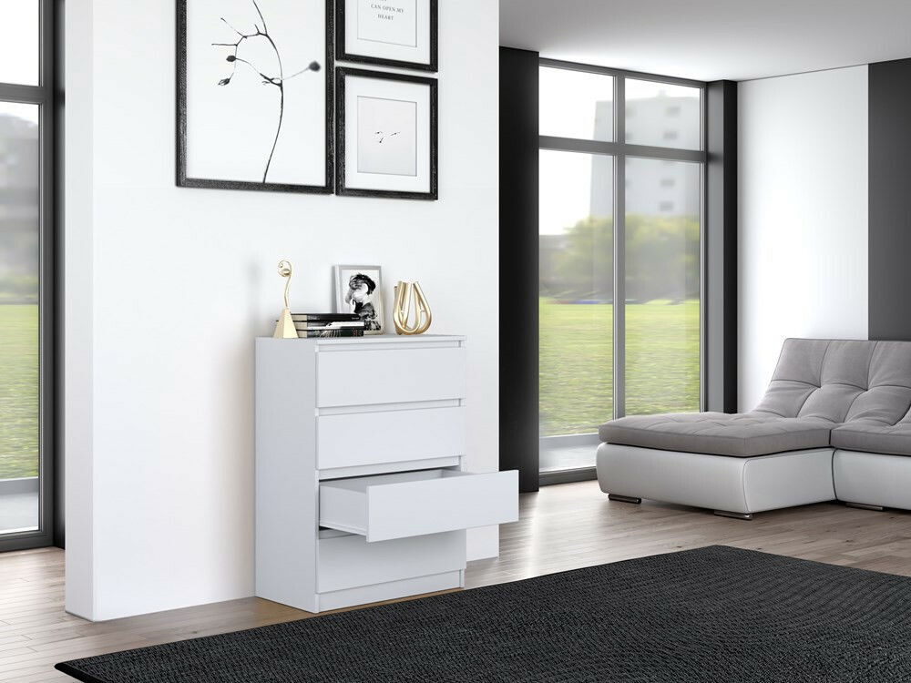 Komoda Musecalo 2 v elegantnej bielej farbe je ideálnym riešením pre moderné interiéry, kde sa stretáva funkčnosť s minimalistickým dizajnom. Jej bezúchytové fronty a hladké línie vytvárajú harmonický vzhľad, ktorý sa hodí do spálne, obývacej izby alebo detskej izby. Vyrobená z kvalitnej laminovanej drevotriesky s ABS hranami, táto komoda zaručuje vysokú odolnosť a dlhú životnosť. Zásuvky na valčekových vodidlách zabezpečujú pohodlné a bezpečné používanie. Musecalo 2 je skvelou voľbou pre tých, ktorí ocenia spojenie elegancie a praktickosti.