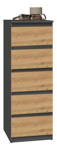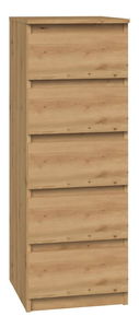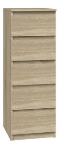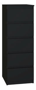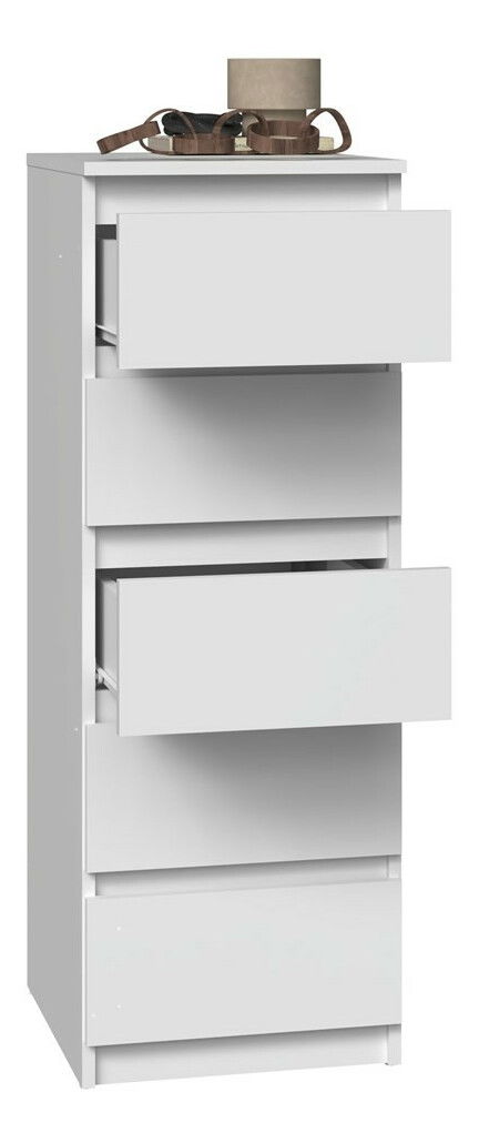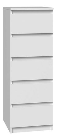 Komoda Musecalo 5 v elegantnej bielej farbe je ideálnym riešením pre moderné interiéry, kde sa kladie dôraz na funkčnosť a štýlový dizajn. S minimalistickou konštrukciou a rozmermi 40 cm na šírku a 111 cm na výšku ponúka dostatok úložného priestoru bez zbytočného zaberania miesta. Plynulo vysúvateľné zásuvky so zámkom proti vysunutiu zabezpečujú bezpečné a pohodlné používanie, pričom bezúchytové fronty dodávajú komode moderný vzhľad. Vyrobená z kvalitnej laminovanej drevotriesky, táto komoda je nielen praktická, ale aj odolná.