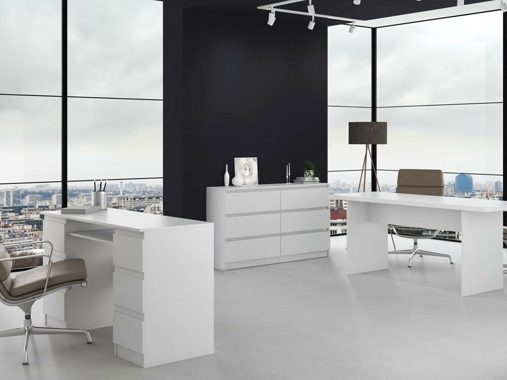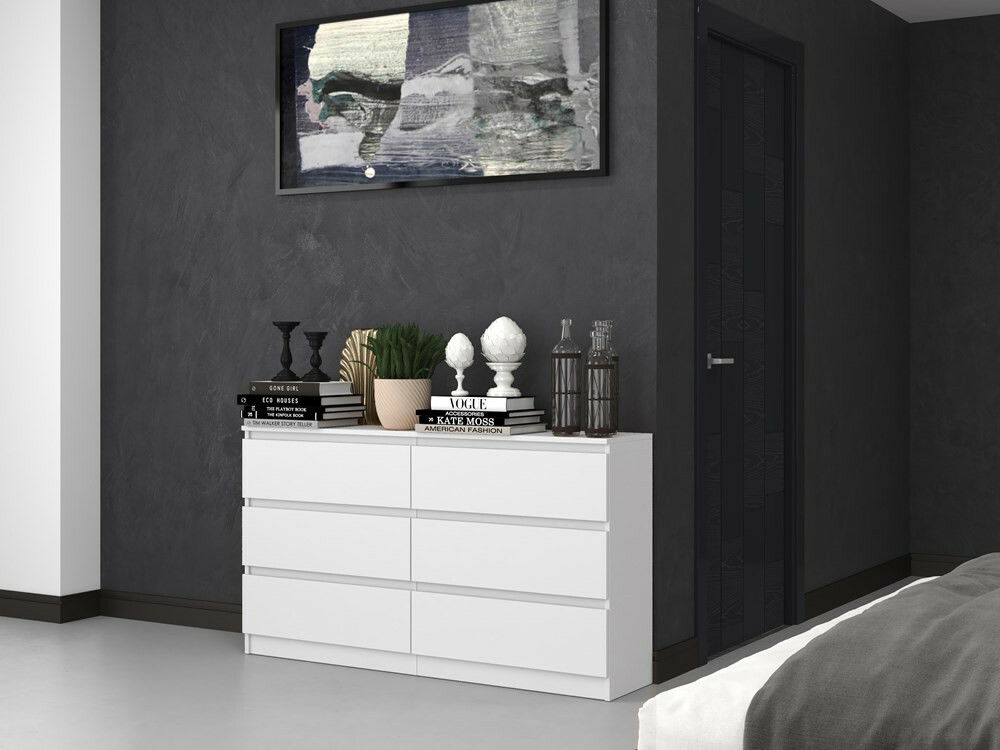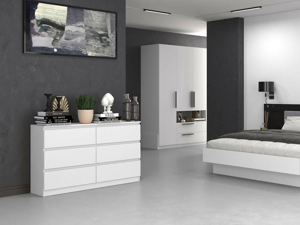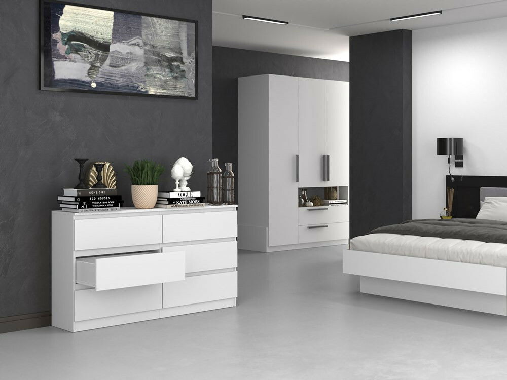 Komoda Musecalo 6 140 v elegantnej bielej farbe je ideálnym riešením pre moderné interiéry, kde sa stretáva funkčnosť s minimalistickým dizajnom. Jej bezúchytové fronty a hladké línie dodávajú priestoru vzdušnosť a súčasne zabezpečujú pohodlné používanie. Vyrobená z kvalitnej laminovanej drevotriesky s hrúbkou 16 mm, táto komoda ponúka dostatok úložného priestoru a je vybavená zásuvkami na valčekových vodidlách, čo zaručuje ich bezpečné a tiché otváranie. S touto komodou si zariadite srdce vášho domova s eleganciou a štýlom.