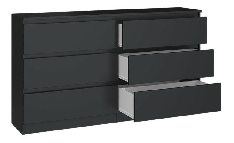 ZobraziťKomoda Musecalo 6 140 v elegantnej čiernej farbe je ideálnym riešením pre moderné interiéry, kde sa stretáva funkčnosť s minimalistickým dizajnom. Jej bezúchytové fronty zásuviek zabezpečujú pohodlné používanie a podčiarkujú súčasný charakter nábytku. Vyrobená z kvalitnej laminovanej drevotriesky s rozmermi 138 cm na šírku, 40 cm na hĺbku a 75 cm na výšku, ponúka dostatok úložného priestoru pre vaše osobné veci. Tento kus nábytku sa skvele hodí do spálne, obývačky alebo detskej izby, pričom jeho univerzálny vzhľad osloví každého, kto ocení spojenie elegancie a jednoduchej estetiky.