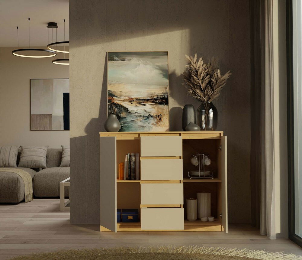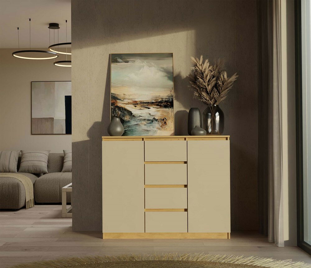 ZobraziťKomoda Musecalo 8 v elegantnej kombinácii farieb dub artisan a kašmír je ideálnym riešením pre moderné interiéry. S rozmermi 120 cm na šírku, 40 cm hĺbku a 97 cm výšku ponúka dostatok úložného priestoru v podobe dvoch dverí a štyroch priestranných zásuviek, ktoré sú osadené na valčekových vodidlách pre plynulé a pohodlné otváranie. Minimalistický dizajn bezúchytkových frontov zaručuje nielen estetiku, ale aj praktickosť, čím sa komoda stáva skvelým doplnkom do spálne, obývačky či predsiene. Jej kvalitné spracovanie zabezpečuje dlhú životnosť a odolnosť.