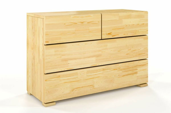 má síce jednoduchý dizajn, ale pôsobí veľmi elegantne. Horná časť je tvorená , ktoré využijete na menšie veci, bielizeň a podobne. sú vhodné na posteľnú bielizeň alebo oblečenie. Komodu z borovicového dreva využijete v spálni, detskej izbe aj obývačke. Zásuvky sa pohybujú po kovových koľajničkách, pohodlne sa otvárajú a pri dovieraní sa spomalia a potichu zatvoria. je zárukou dlhej životnosti, stability a odolnosti komody. Povrch je ošetrený viacerými vrstvami laku, čím je zabezpečená odolnosť voči oderu a opotrebovaniu. šírka: 120 cmvýška: 81 cmhĺbka: 45,5 cmvnútorné rozmery menšej zásuvky: 52 x 20 x 38 cmvnútorné rozmery väčšej zásuvky: 112 x 20 x 38 cm